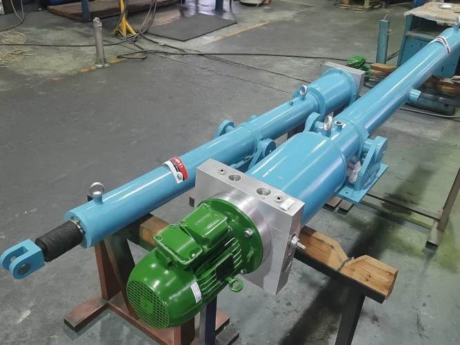 This compact integrated system consisting of a double acting hydraulic cylinder and mini power pack which facilitate the movement of some mechanical devices. Typically, a radial door at the bottom of a silo which then allows ore to be discharged from silos by opening or closing a radial door. After the radial door is opened the ore flow rate, onto the conveyor belt, is controlled by purpose designed structures to prevent flooding of the conveyor belt. EHA’s can also be used to open and close ventilation control doors located in mining tunnels. These units are ideally suited for low frequency applications, where movement is required once or twice per hour.